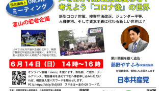 日本共産党の井上哲士参院議員を迎えてのオンラインミーティング第3弾が8月30日行われました。学生や社会人など15人が参加。民医連では会場を設定して、6人が参加しました。