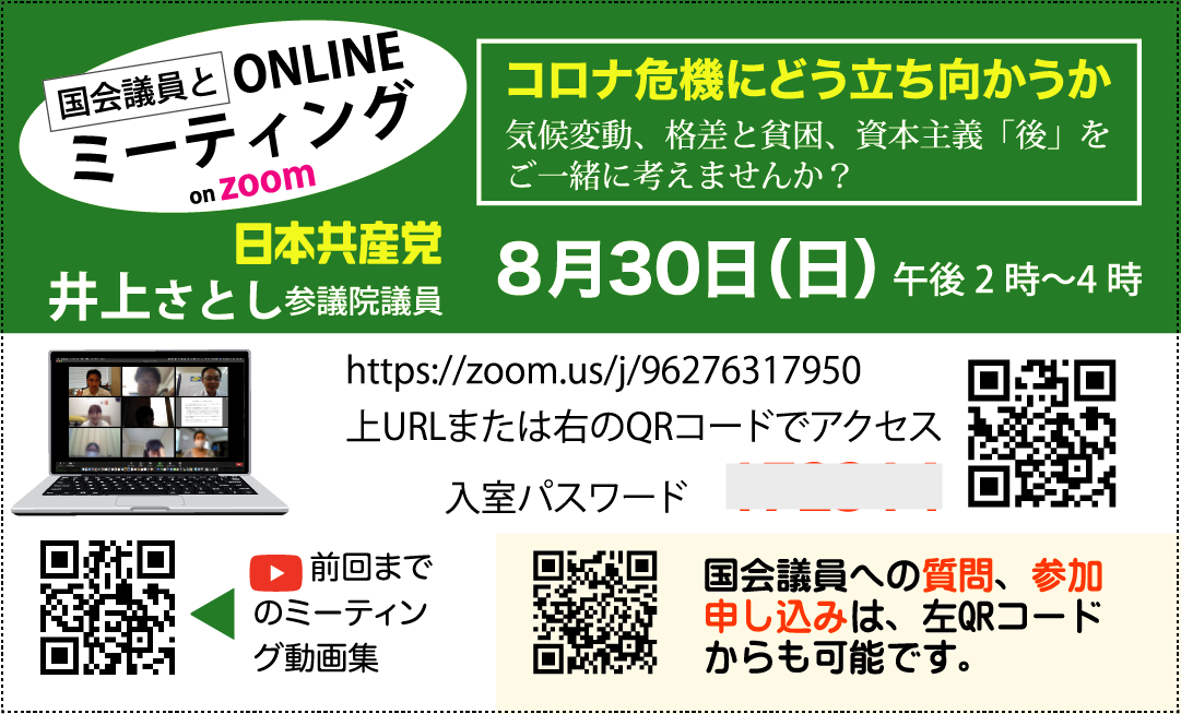 申し込み先 民青とやま(090-2032-2852、青山)、日本共産党富山県委員会(076-432-8383) メールの場合は、minsei.tym@gmail.com