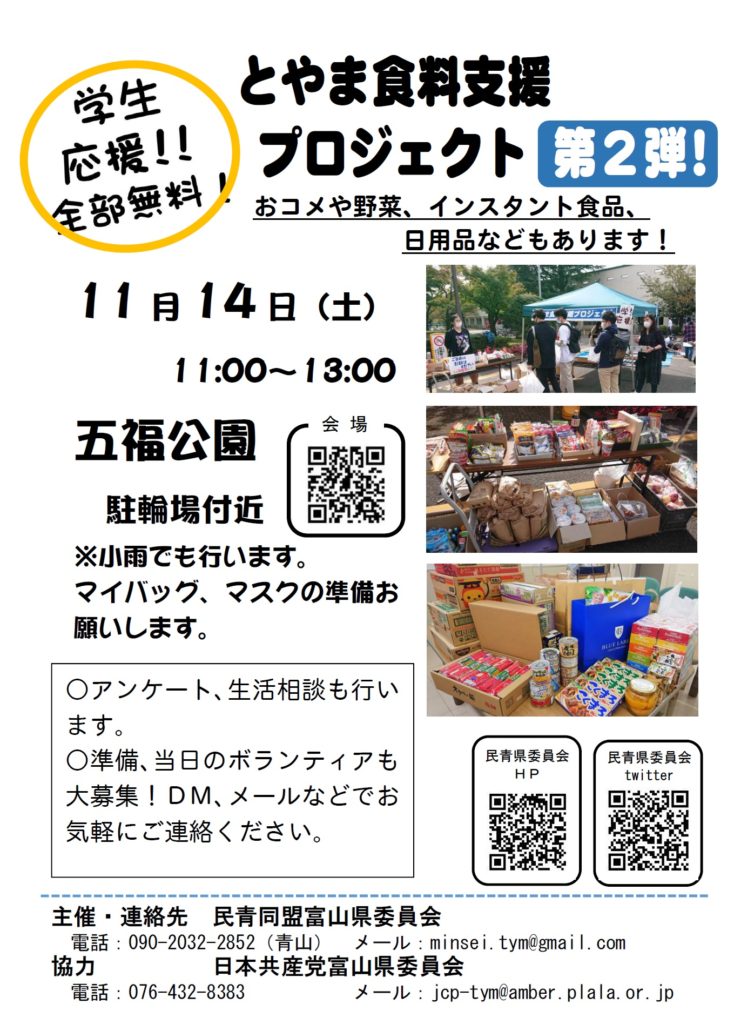 詳しくは、民青県委員会まで minsei.tym@gmail.com