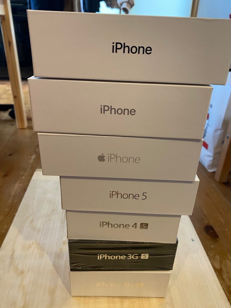Phoneが毎年のようにモデルチェンジし、私たちもどんどん買い替えしてしまいます。上の画像は、私が最初に購入した3GSモデル以降、買い替えを続けてきたiPhoneの箱です。家でとりあえず見つかったのはこれだけですが、この箱以外にまだあるはずです。