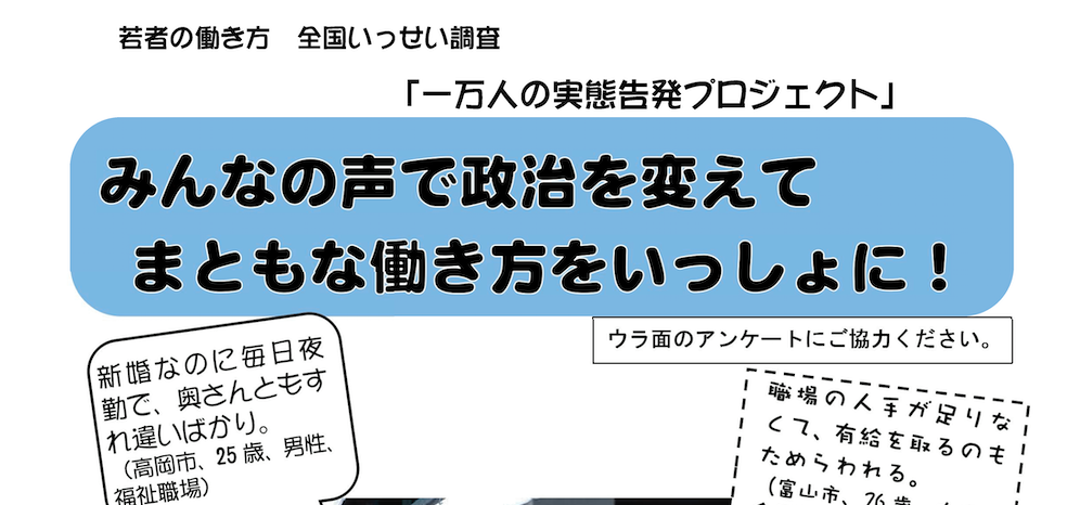若者の働き方全国一斉調査。みんなの声で政治を変えて、まともな働き方をいっしょに!