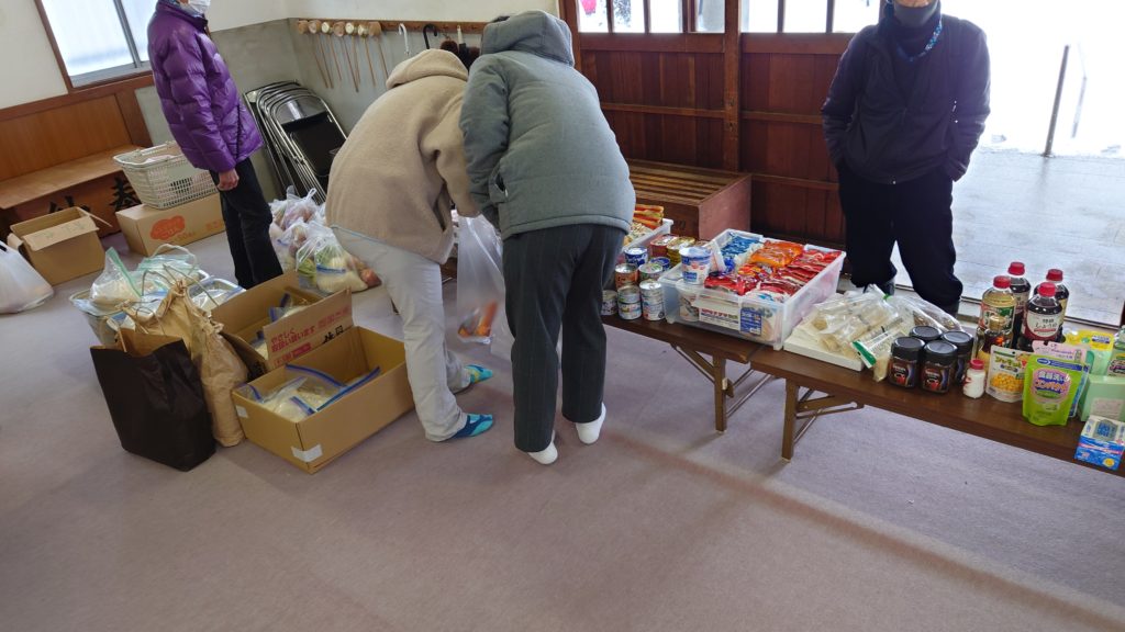 年内最後となる12月の食料支援を、射水市小杉では25日、富山市五福では26日と続けて行いました。年末ということもあったのか、射水市では9人、富山市では15人が来場。富山市では、前日来れなかったのでと、射水市の県立大学の学生が車に乗り合わせて来場する姿もありました。今回も、前回に続いて留学生を案内する学生さんの姿もありました。