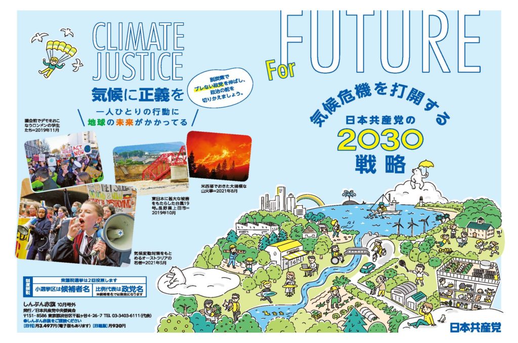 秋の連続学習企画第2弾として、10月9日、気候危機問題の学習会をリアル参加とオンライン併用で行いました。藤野さんは、日本共産党が2021年に発表した「気候危機打開の2030戦略」も紹介しながら、今年の猛暑をはじめ世界で広がっている気候危機の現状を、パワーポイントも使って紹介。一方で、日本には技術も資源も豊富にあることも紹介しました。後は、再エネ中心の社会に切り替えていく政治家の決断にかかっていると語って、すでに全国で始まっている再エネを進めるための具体的対策も紹介しました。