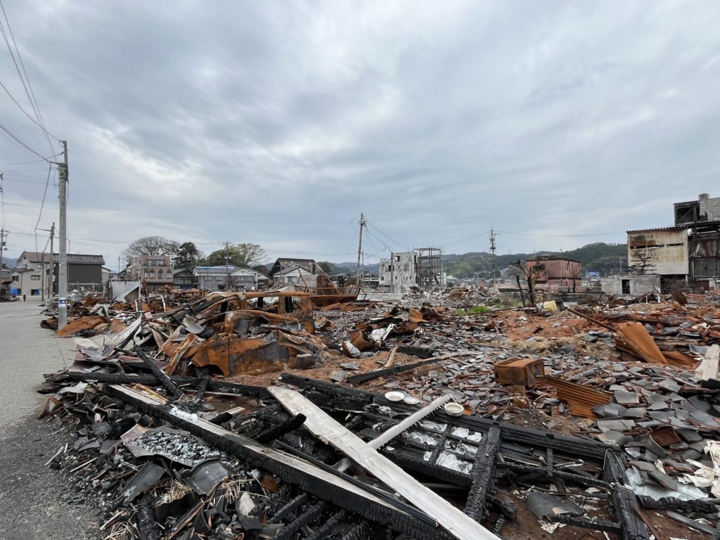 「現地のリアル」を知ることができた。私は今日、このボランティアに参加するまで、現地のリアルについて、自身の目や耳で何かを聞いたわけではなかった。しかし、今回のボランティアで、「1500万円」がなくなった話や、朝市のリアルな燃え具合を見ることで、リアルについて理解を深められたとおもっている。(大学4年)