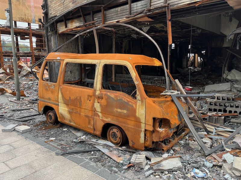 (前編はこちら)仮設住宅での支援物資のお届け活動を終えて、火災で焼失した輪島朝市の通りの街並みを見学してきました。