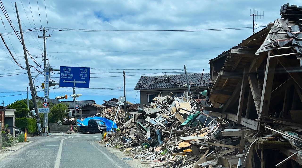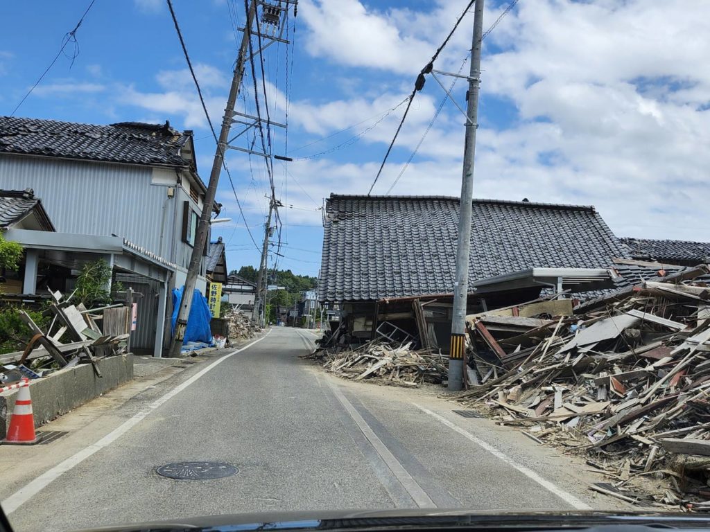前回訪問した輪島市も甚大な被害に驚きましたが、珠洲市はそれと比較しても家屋の崩壊は著しく、不自然な傾斜、隆起したマンホールに我々はただ息をのむことしかできませんでした。景観は多少元に戻っても、そこに人が戻ってくるにはあまりに長い月日を経ることになるのは明らかでした。