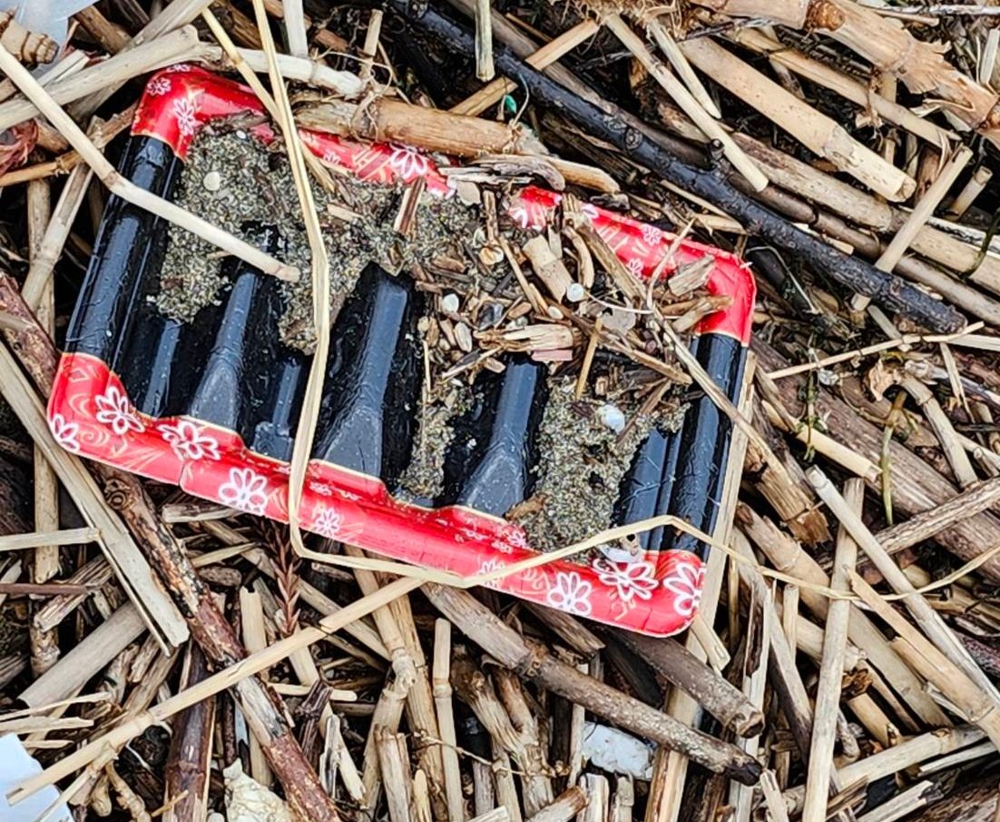 到着して海岸を見た途端、参加者からは「ええ〜、ゴミだらけ!」と口々に驚きの声があがりました。ペットボトル、発泡容器、ゴミ袋、お菓子の袋からありとあらゆるものが漂着していました。土の表面には5ミリくらいの白い粒が散乱していました。それは、農業で使われている肥料の殻で、肥料をプラスチック製の皮膜で覆い、これを田んぼに撒くのだそうです。プラスチックの被膜が裂けて肥料が徐々に溶け出していくという仕組みだそうです。少しずつ肥料が溶け出していくというのがミソで、これだと農家は1回散布するだけでよく、長期期間安定して田んぼに肥料が供給されるという仕組みなのです。