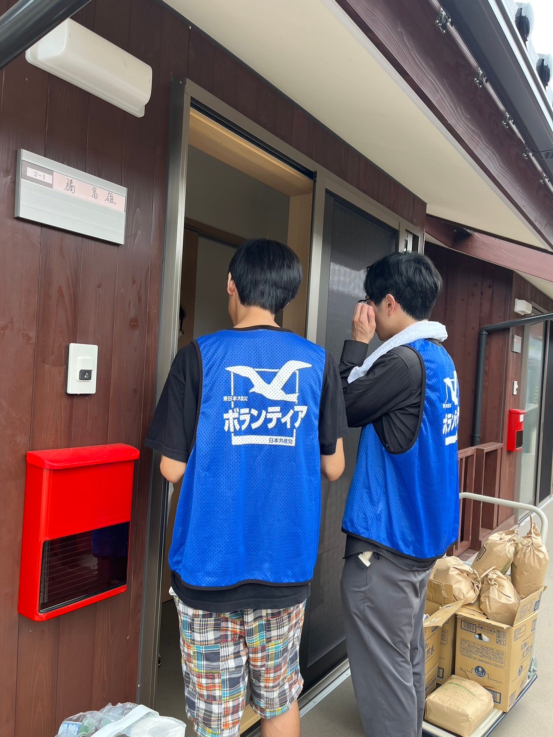 仮設住宅に着くと、各家にトラックに積んだお米や飲料水をお渡しし、お困りごとや行政に対する要望をお聞きします。
